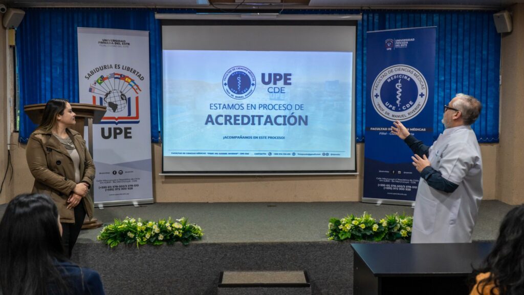 En la mañana del 06 de agosto y a las 10:00 horas, la Universidad Privada del Este (Filial Ciudad del Este) recibió a estudiantes, egresados, autoridades y docentes en la Sala de Reuniones / Salón Auditorio de la Facultad de Ciencias Médicas, en el marco de la reunión participativa convocada por la Comisión Ad Hoc del Plan de Desarrollo de la Carrera de Medicina. El encuentro tuvo como propósito socializar los avances del proceso y recoger aportes de la comunidad académica para la formulación del Plan de Desarrollo 2026–2030.