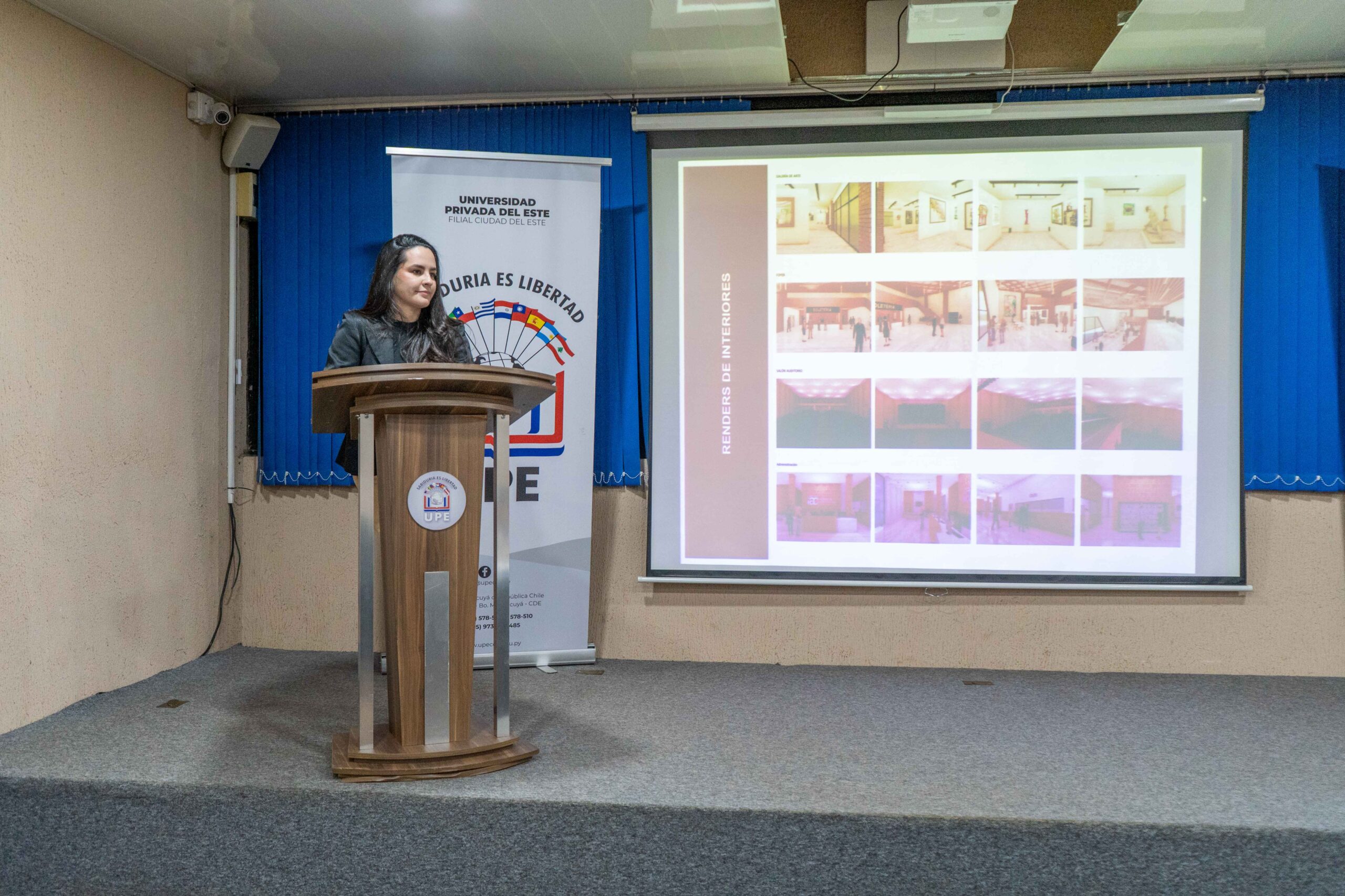 La presentación estuvo a cargo de la estudiante Amanda Mariví Leith Saldivar, quien desarrolló el tema “Proyecto de un Instituto de Arte y Cultura, en la ciudad de Minga Guazú”, abordando aspectos de diseño arquitectónico, integración urbana, funcionalidad cultural y sostenibilidad.