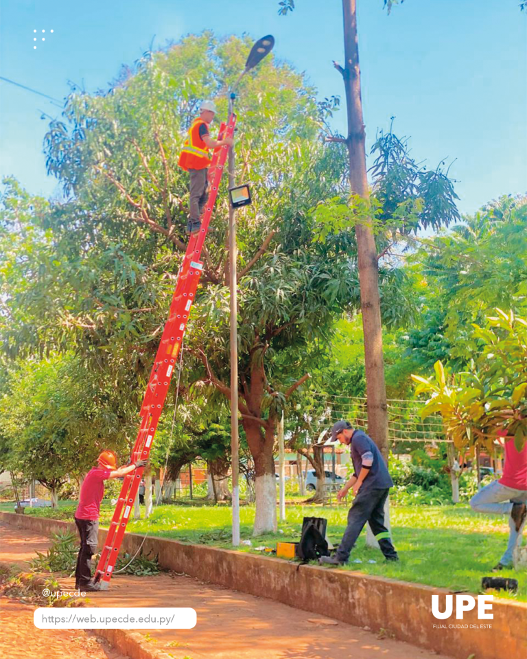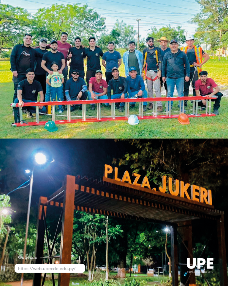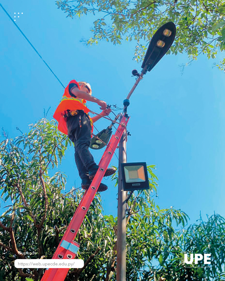 Como parte de una actividad de extensión universitaria, los alumnos de la carrera de Ing. Electromecánica de la UPE CDE realizaron un valioso aporte a la comunidad del Km 14 Monday, donde se encargaron de proveer iluminación completa a la Plaza “Jukeri”.