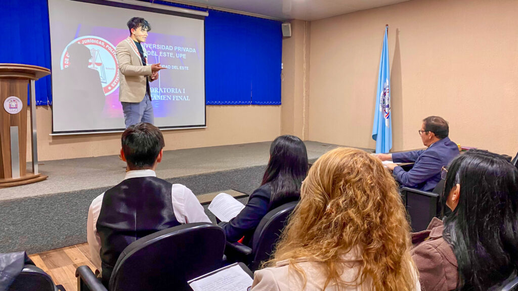 En el marco del cierre del primer semestre académico, los estudiantes del segundo curso de la carrera de Derecho de la Facultad de Ciencias Jurídicas, Políticas y Socialesde la Universidad Privada del Este – Filial Ciudad del Este, realizaron el examen final correspondiente a la asignatura Oratoria I.