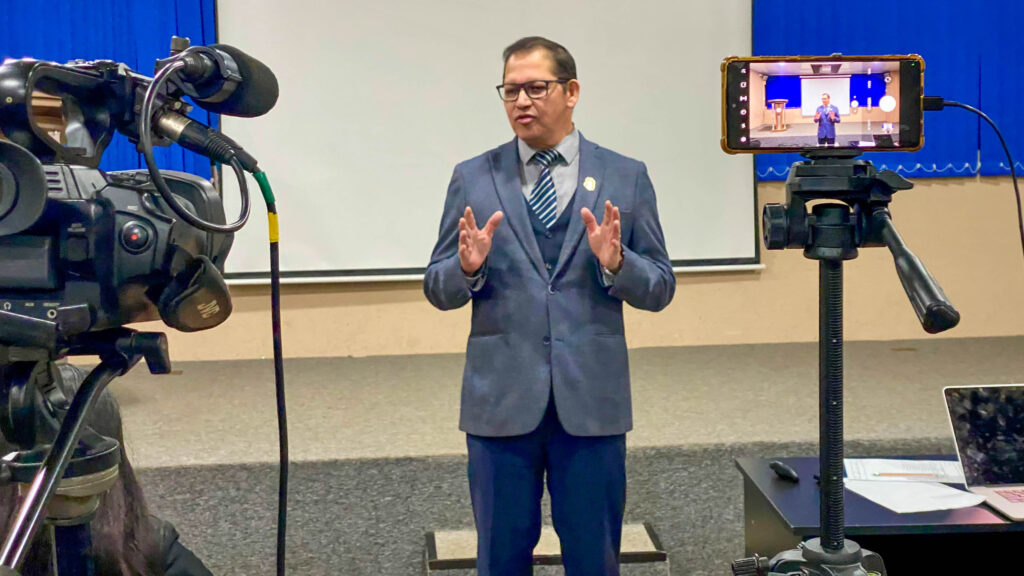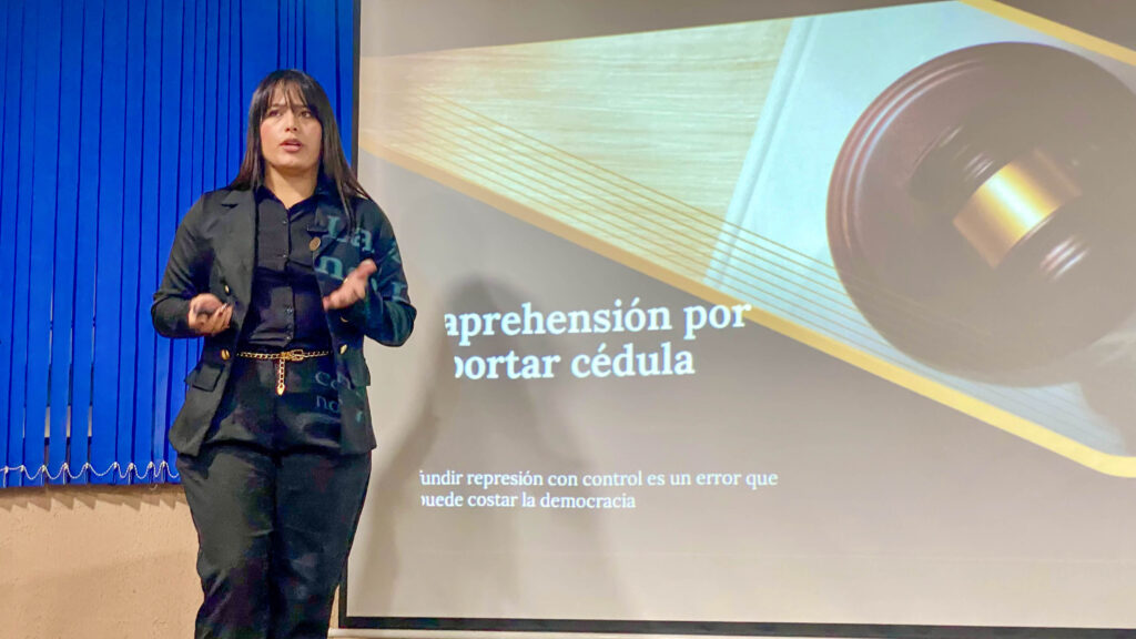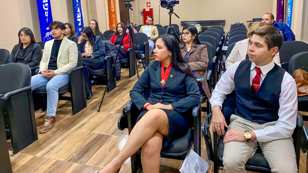 La evaluación tuvo lugar en el Salón Audiovisual de la institución, donde los alumnos presentaron exposiciones orales sobre temas del ámbito jurídico y de interés general, demostrando el dominio de técnicas discursivas y persuasivas, así como competencias comunicacionales fundamentales para el ejercicio profesional del Derecho.