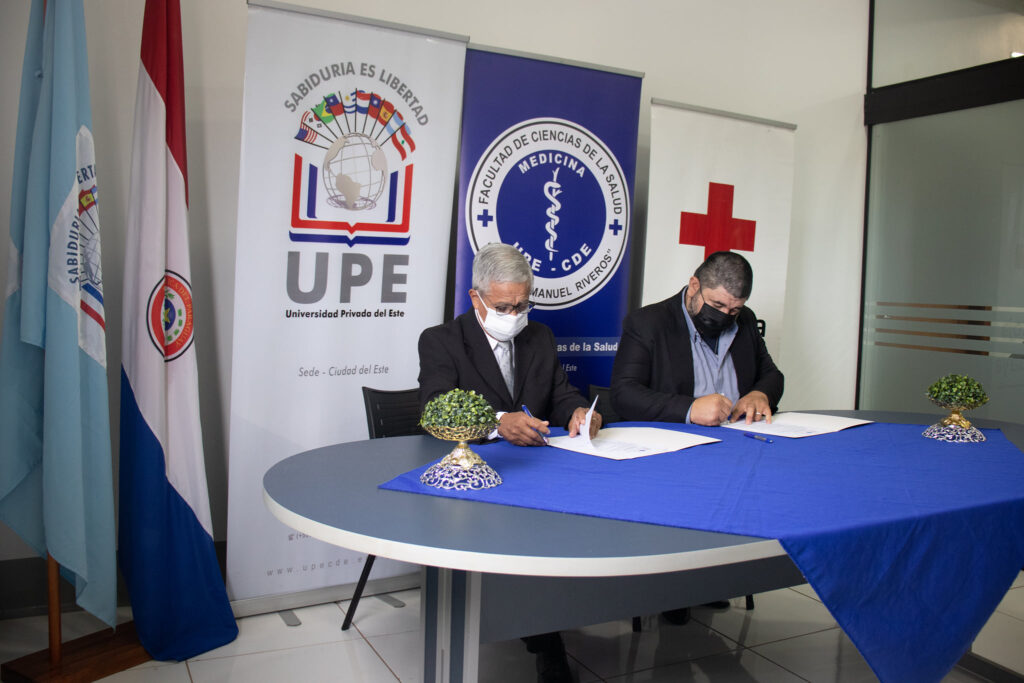 Con el objetivo de fortalecer la cooperación interinstitucional en el ámbito académico, científico y social, la carrera de Medicina de la Facultad de Ciencias de la Salud de la UPE CDE suscribió un Convenio de Cooperación con la Cruz Roja Paraguaya – Filial Alto Paraná, en un acto realizado el 27 de agosto del presente año.