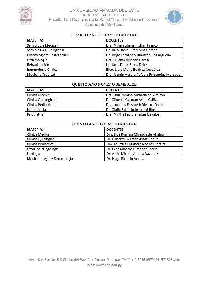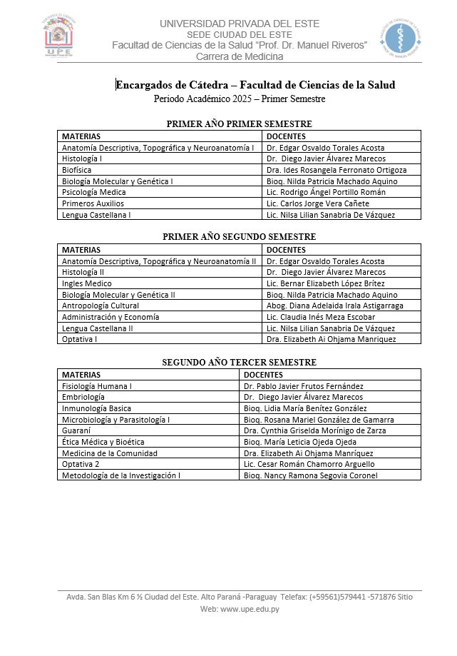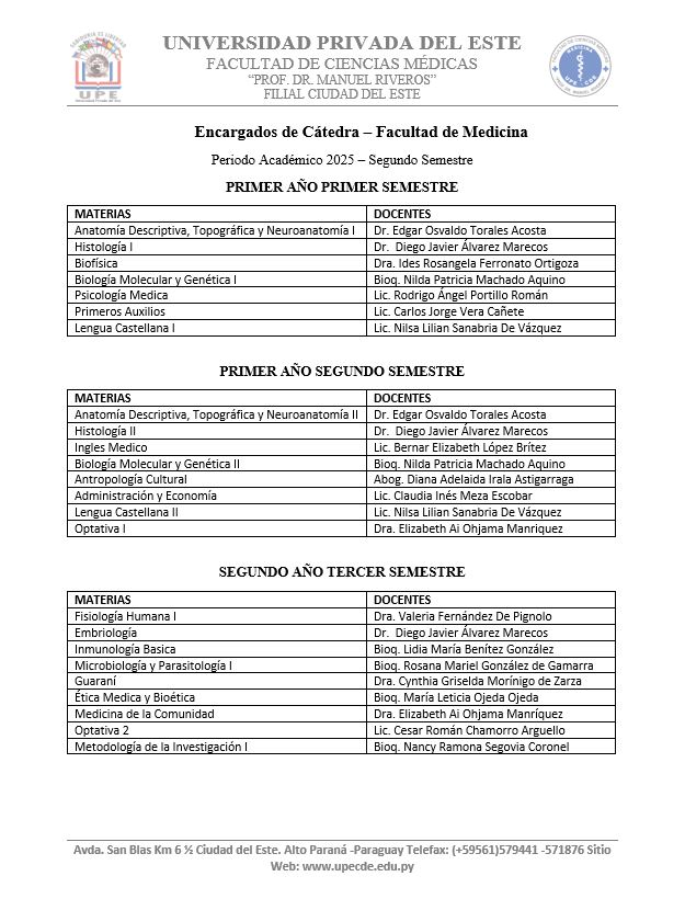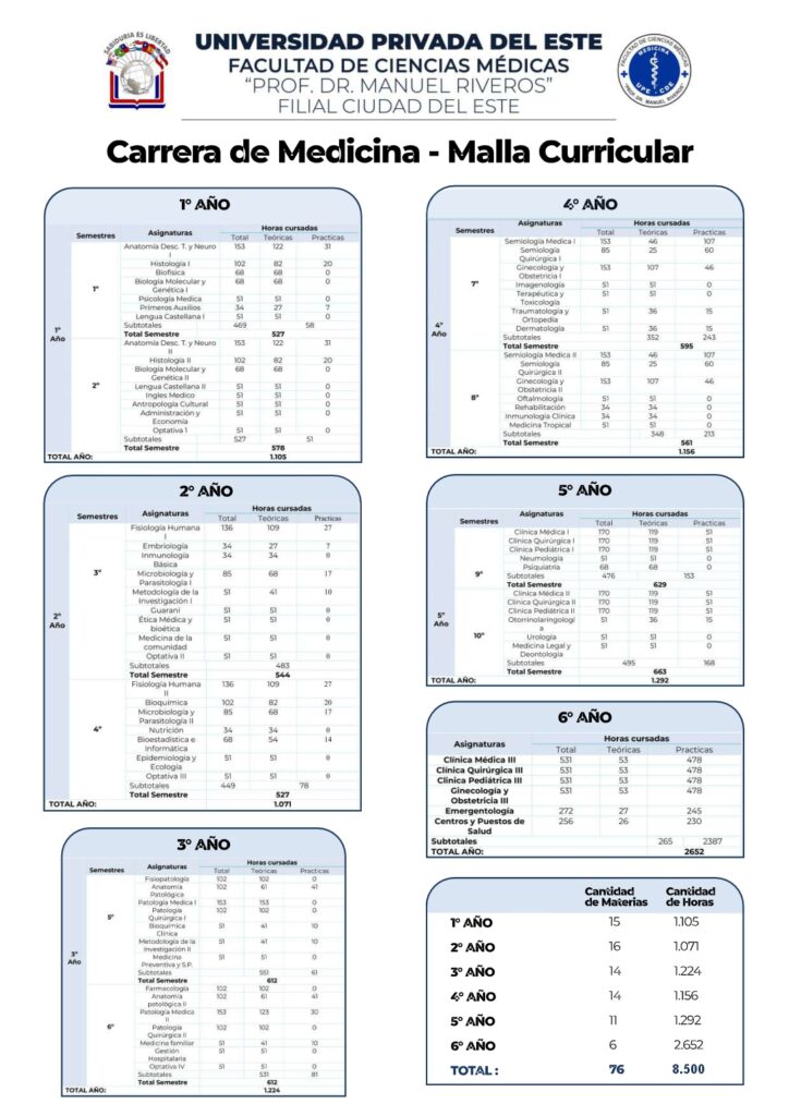 Elegir la carrera de Medicina en la Universidad Privada del Este (Filial Ciudad del Este) significa formarse en una institución reconocida por su calidad educativa, donde cada asignatura está diseñada para garantizar una formación integral y actualizada, en sintonía con las exigencias de la ciencia médica contemporánea.