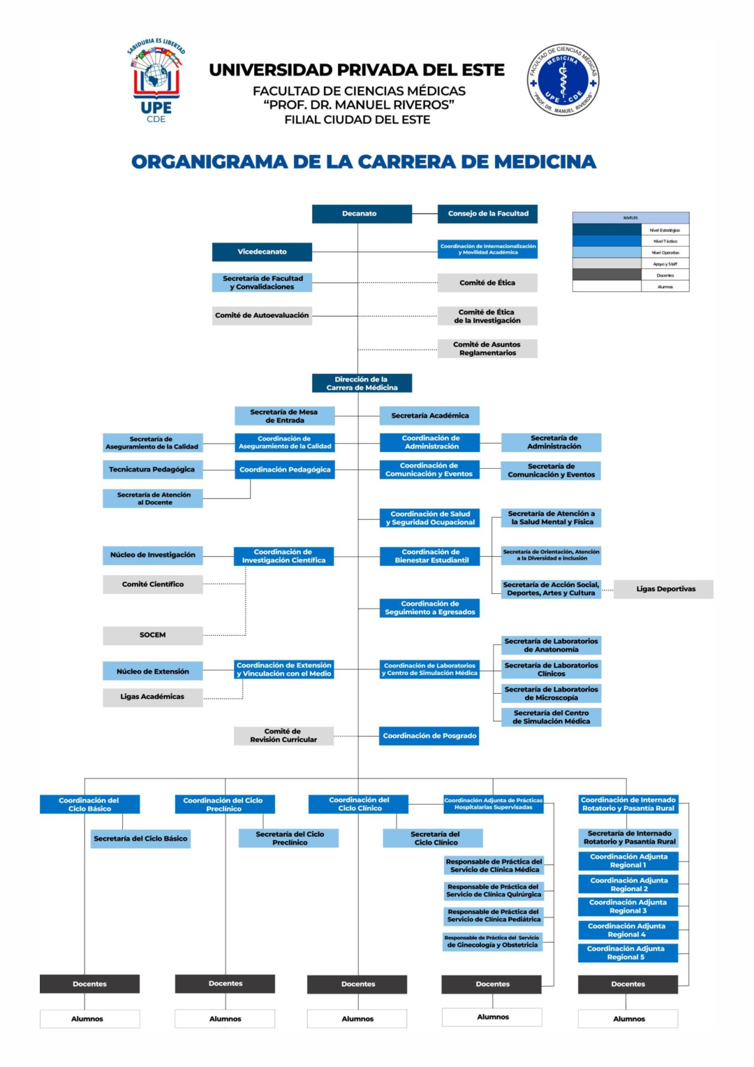 La admisión de los estudiantes a la Facultad de Ciencias Médicas “Prof. Dr. Manuel Riveros” de la Universidad Privada del Este se realiza a través del Curso de Nivelación, un pre-requisito obligatorio para la carrera de Medicina.