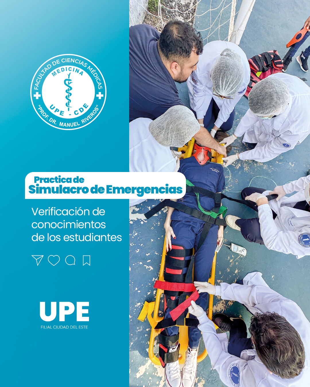 La Facultad de Ciencias Médicas “Prof. Dr. Manuel Riveros” desarrolló una práctica de simulacro de emergencias para evaluar la correcta aplicación de los procedimientos de primeros auxilios por parte de los estudiantes.